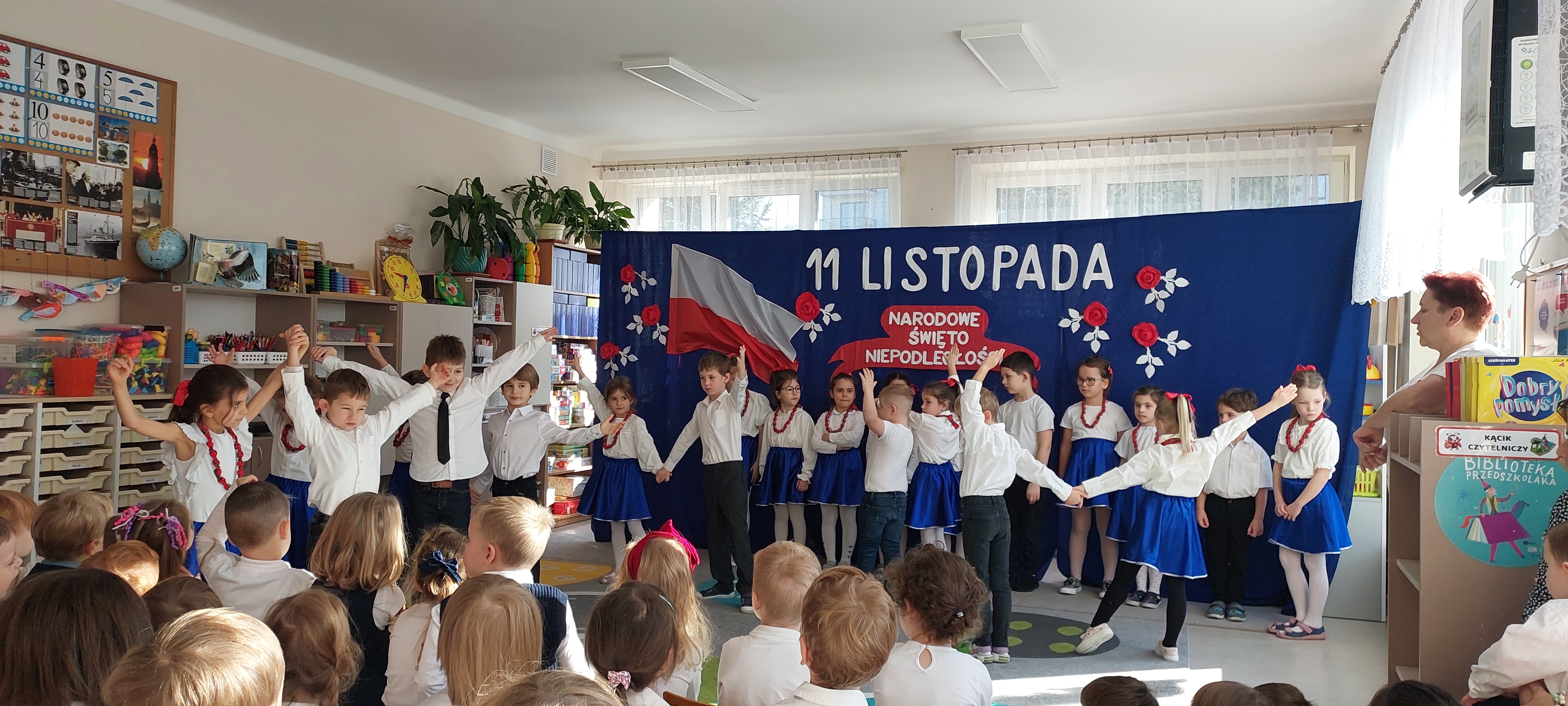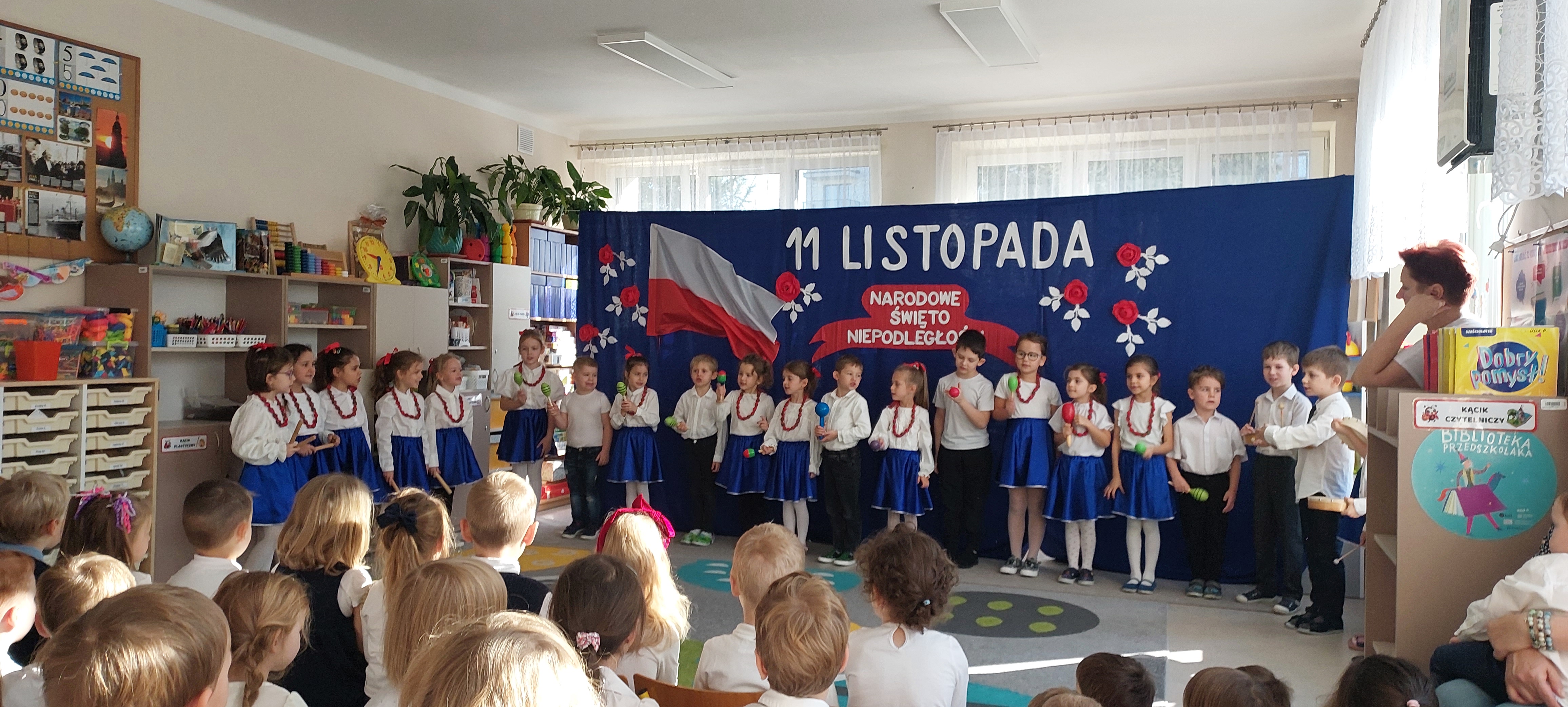 akademia z okazji Dnia Odzyskania Niepodległości przygotowana przez dzieci z grupy IV.