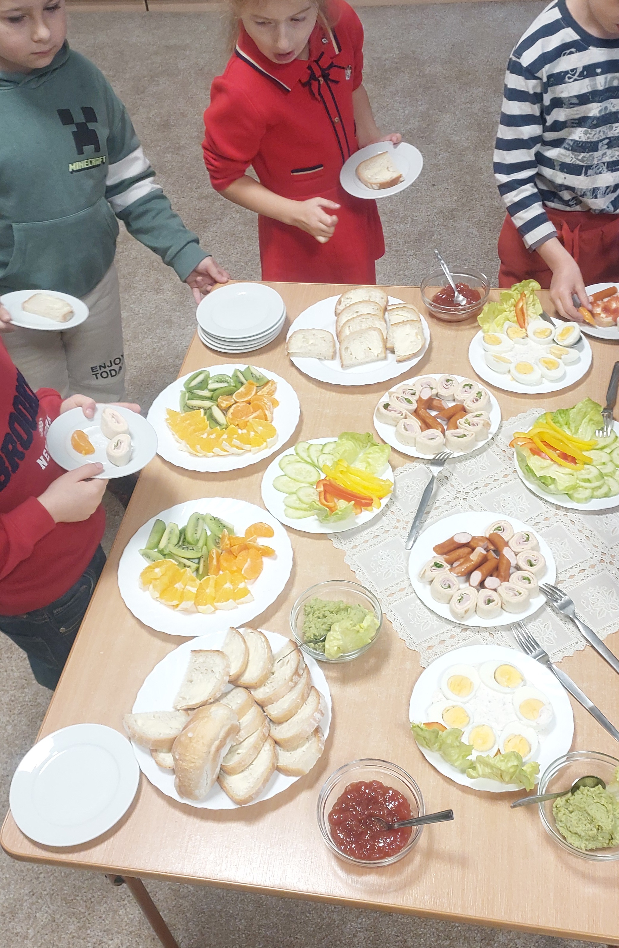 talerzy pełnych różnorodnych smakołyków, które zachęcają dzieci do próbowania różnych potraw wyrabiając jednocześnie nawyki zdrowego odżywiania.